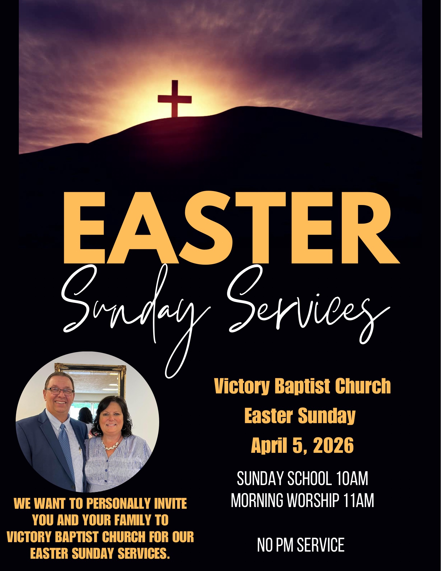 You are invited to attend all services at the Victory Baptist Church!